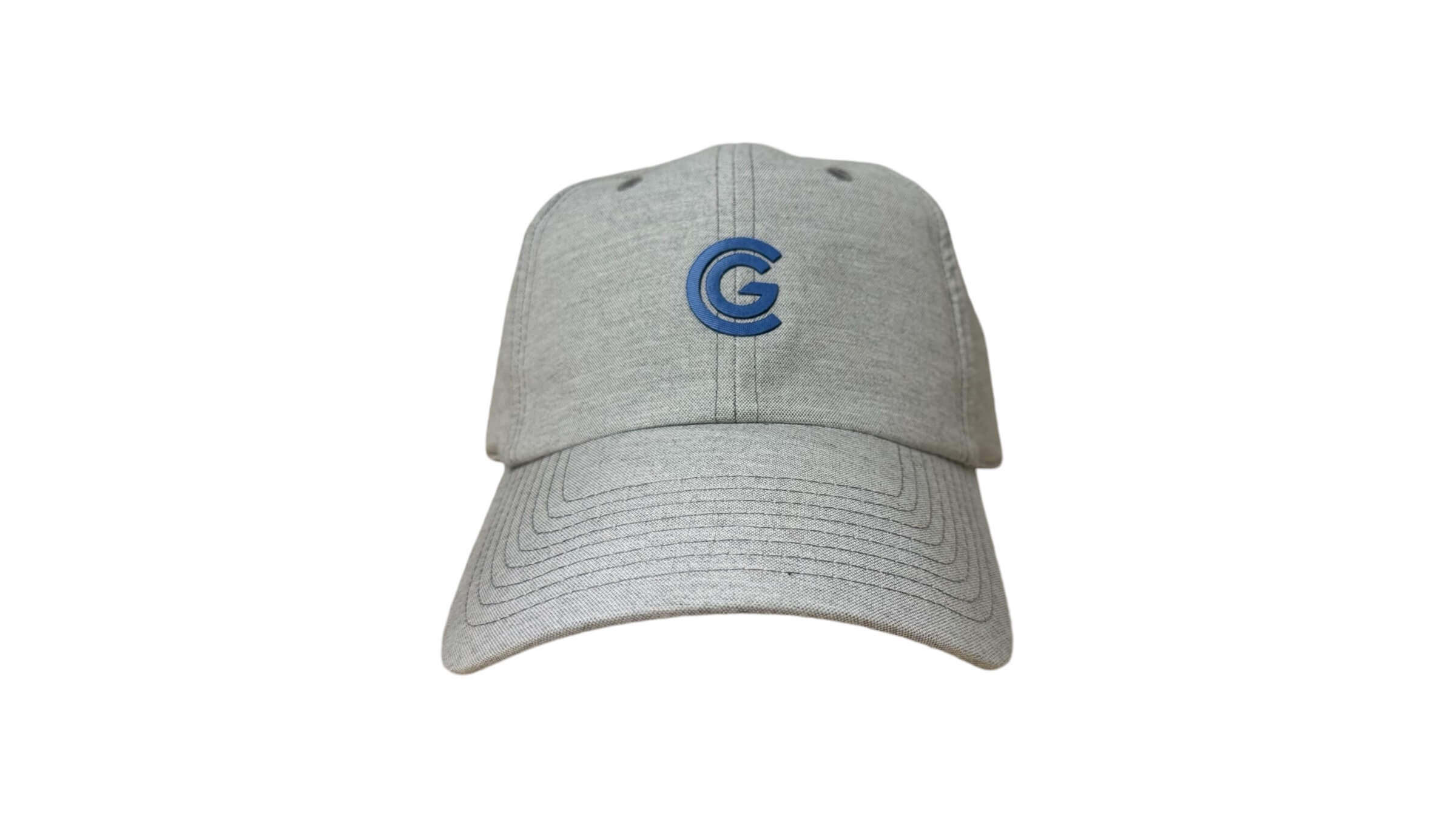 American Needle Grey Baseball Hat. Unstructured, pre-curved visor, blue raised CG mark in center. Lightweight back sweat band.